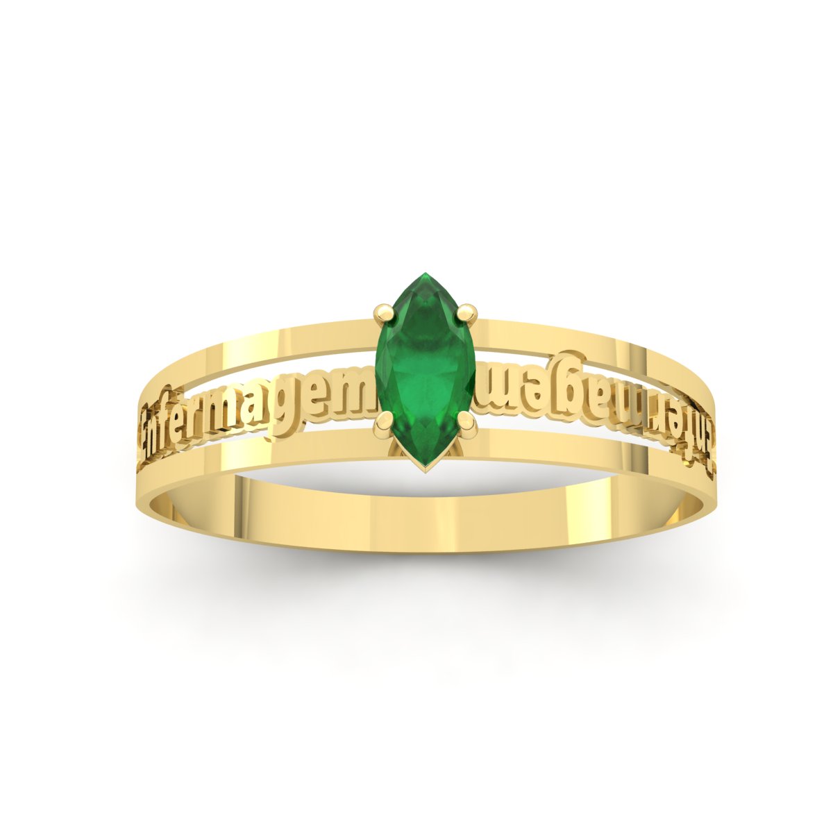 Anel Formatura Enfermagem Pedra Navete Ouro 18k