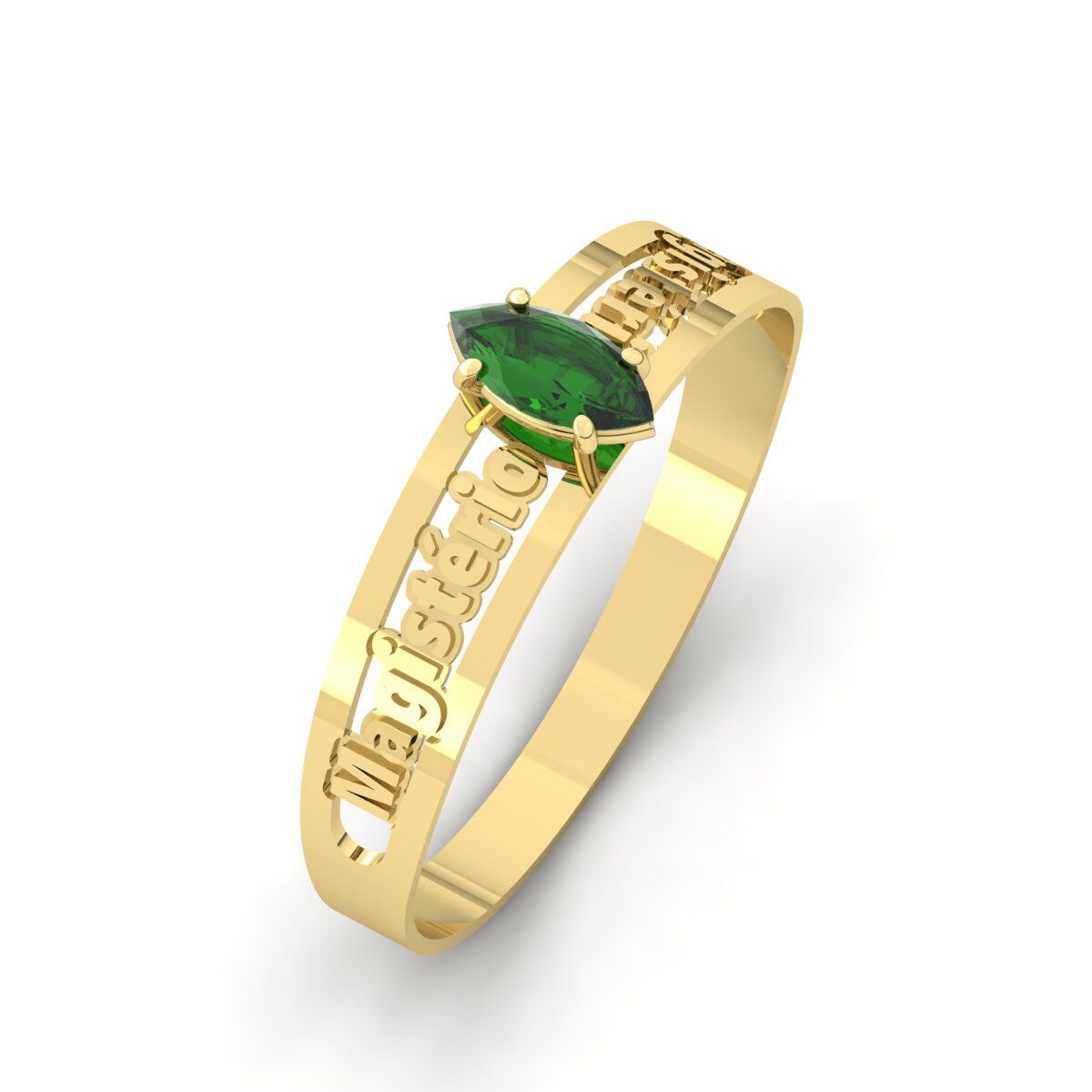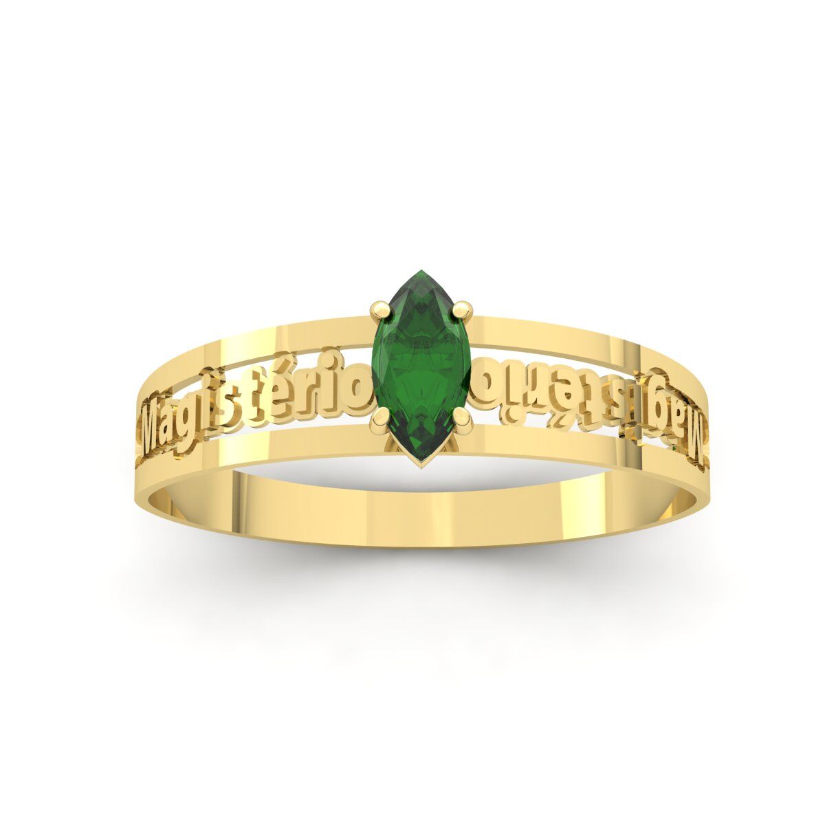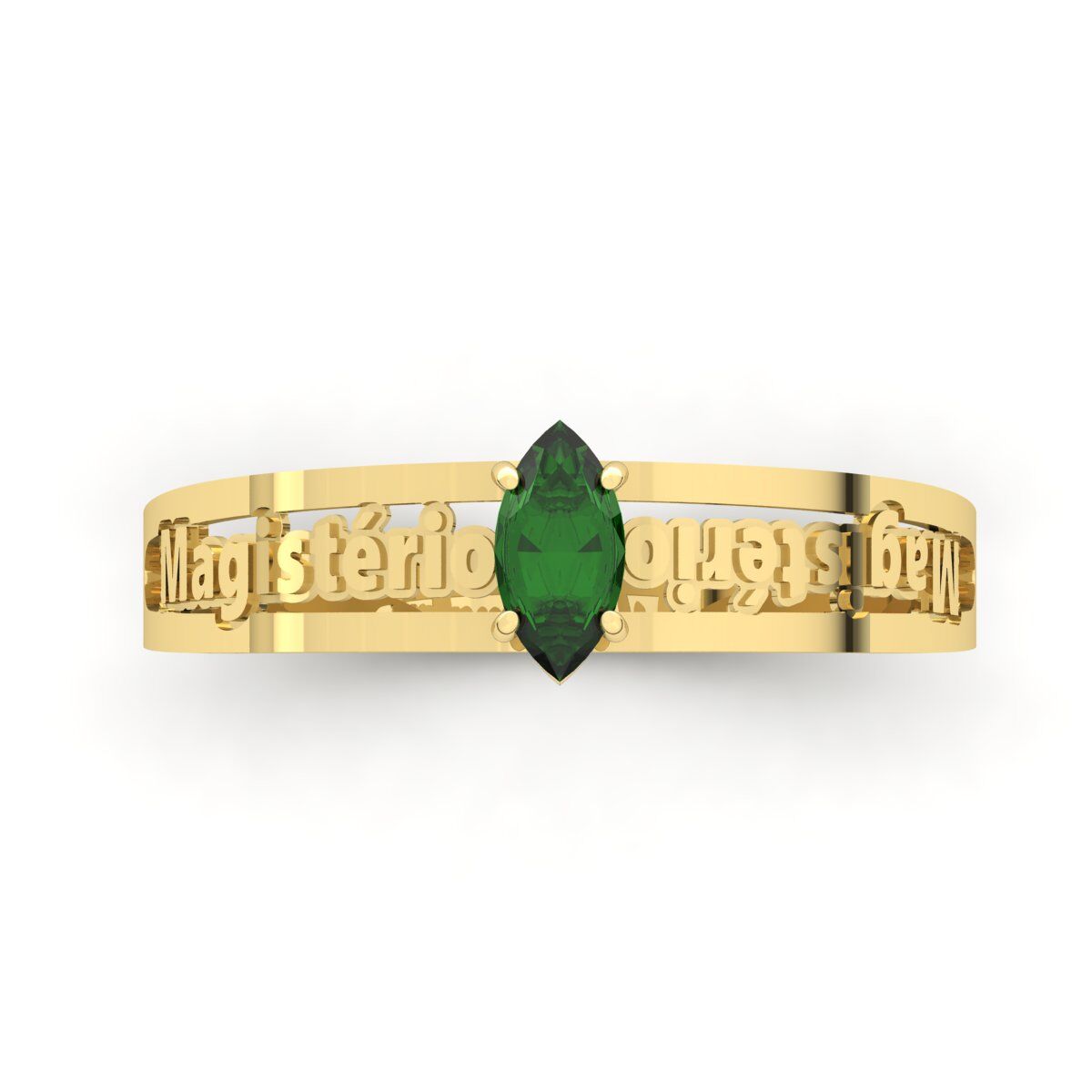 Anel Formatura Magistério Pedra Navete Ouro 18k
