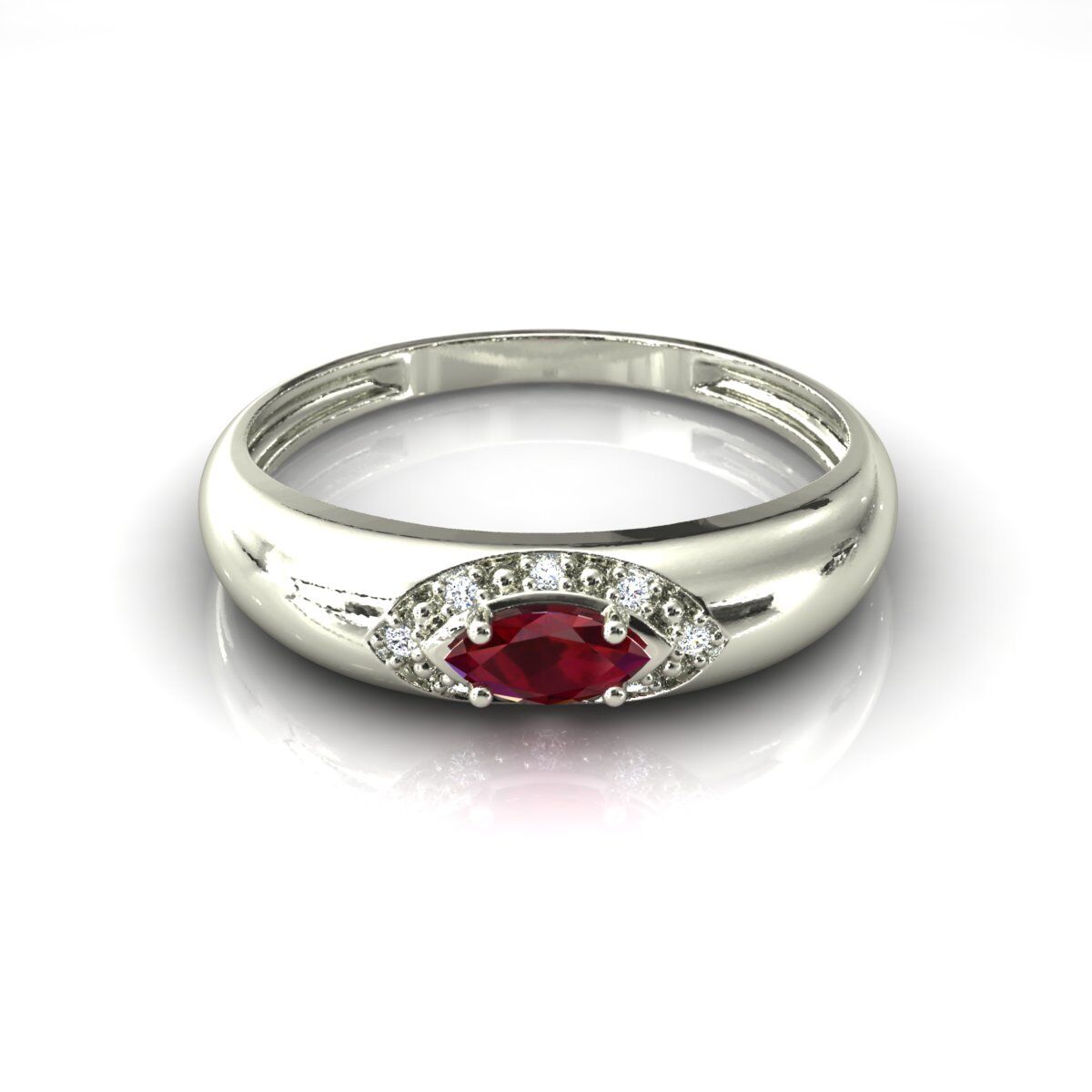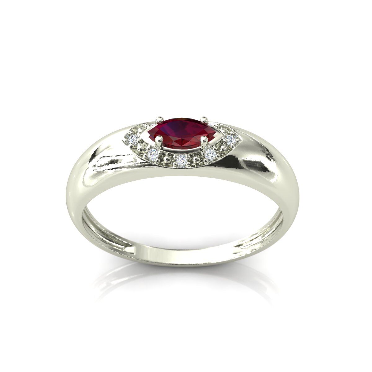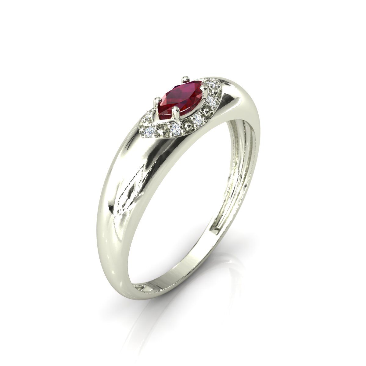 Anel Formatura Pedra Navete Rubi Sintético Ouro Branco 18k