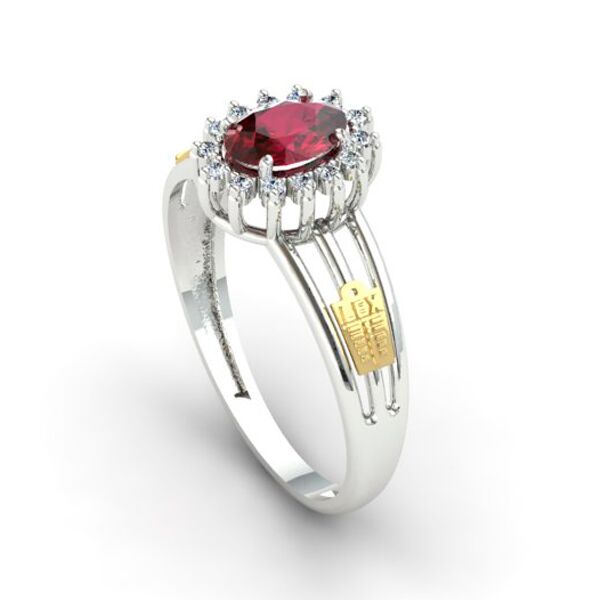 -Anel Formatura Pedra Oval Aro Triplo.